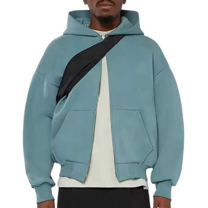 เสื้อฮู้ดดี้ผู้ชายไซส์ใหญ่สำหรับฤดูใบไม้ร่วงและฤดูหนาว ผ้าหนา ซิปคู่ คุณภาพสูง ย้อมสีแบบสเปรย์