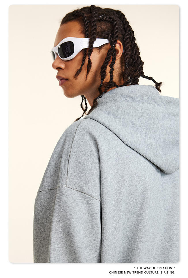 เสื้อฮู้ดดี้เทรนดี้แบรนด์ดังสำหรับฤดูใบไม้ร่วง/ฤดูหนาว ผ้าเทอร์รี่หนา 440gsm แบบเรียบง่าย สวมใส่สบายได้ทั้งชายและหญิง สามารถสกรีนโลโก้ได้ ทรงโอเวอร์ไซส์