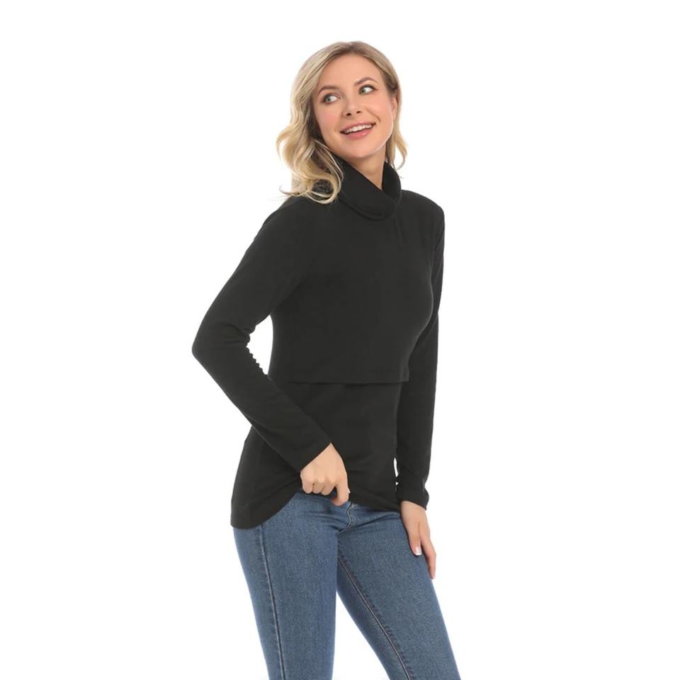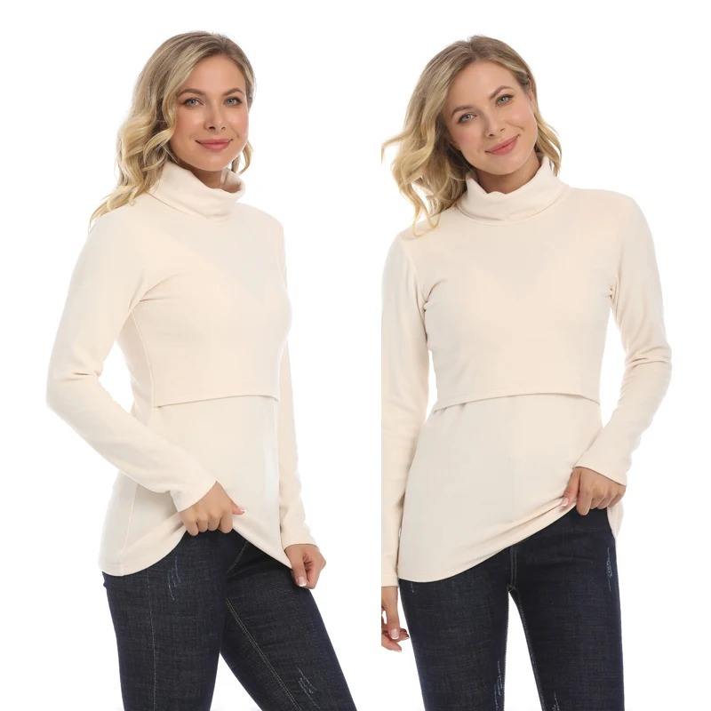 Autumn Winter Turtleneck Tops for Pregnant Women Warm Long Sleeve Cotton Jersey Breastfeeding Friendly Casual Clothing