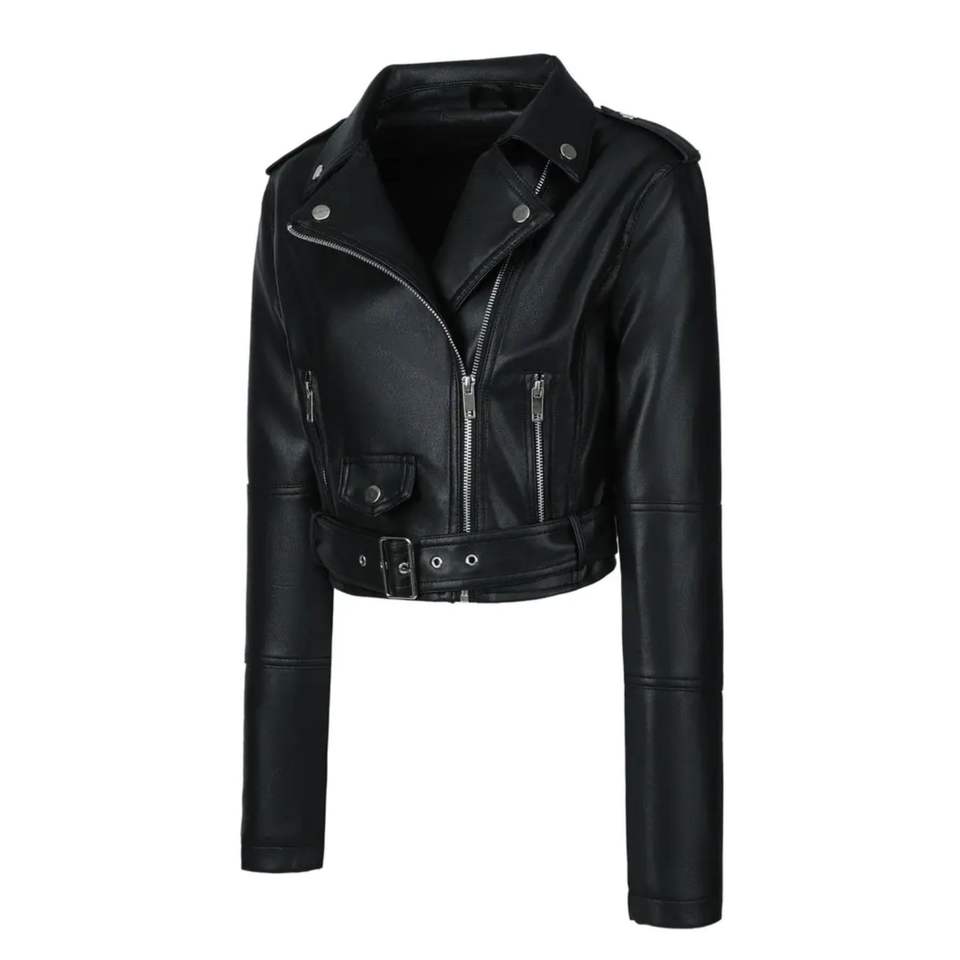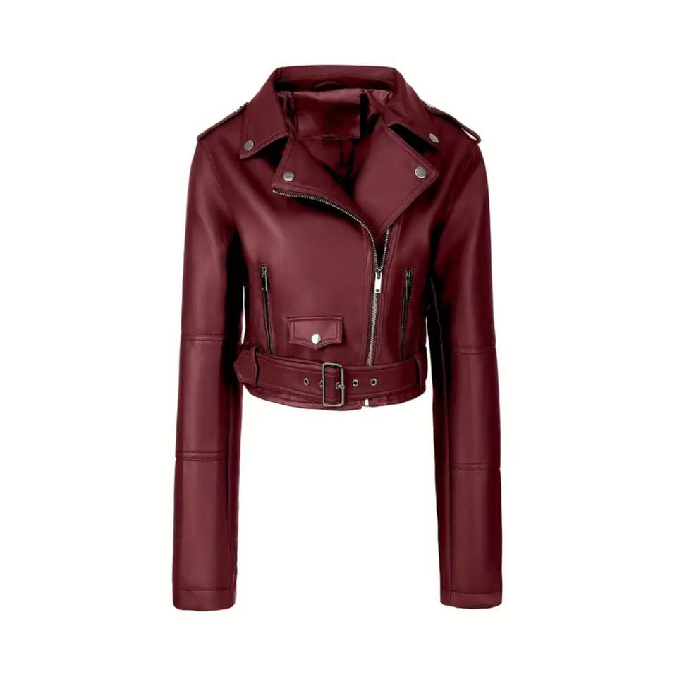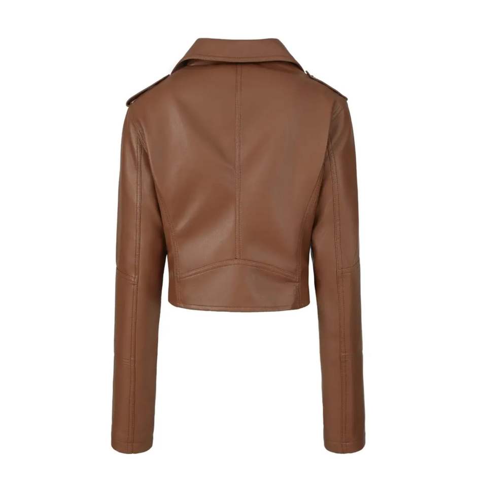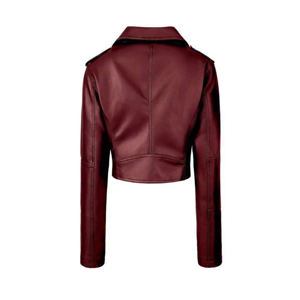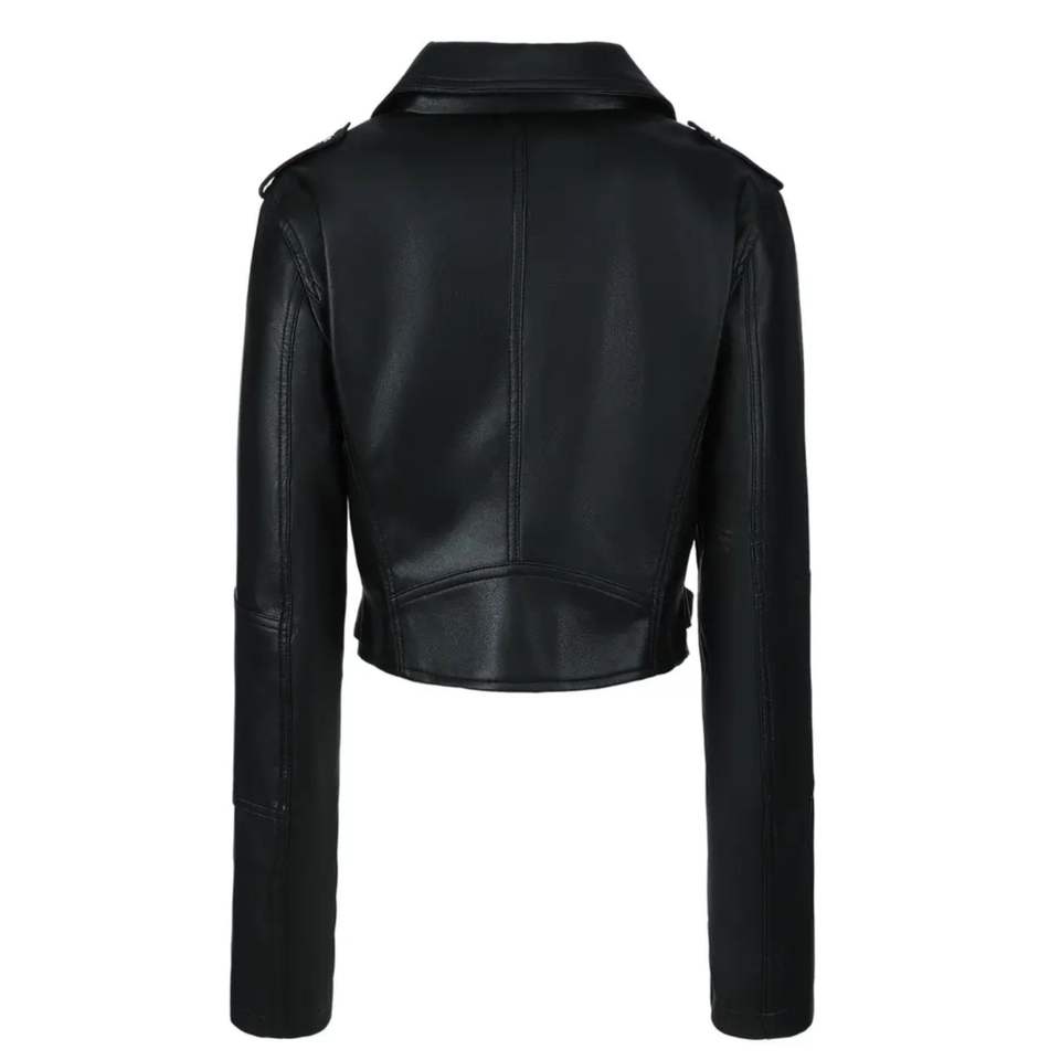 แจ็กเก็ตหนัง PU อเนกประสงค์สีทึบสำหรับขี่มอเตอร์ไซค์สำหรับฤดูใบไม้ร่วงฤดูหนาวเสื้อแจ็กเก็ตมีซิปปกแฟชั่นแจ็คเก็ตแขนยาวสำหรับผู้หญิง
