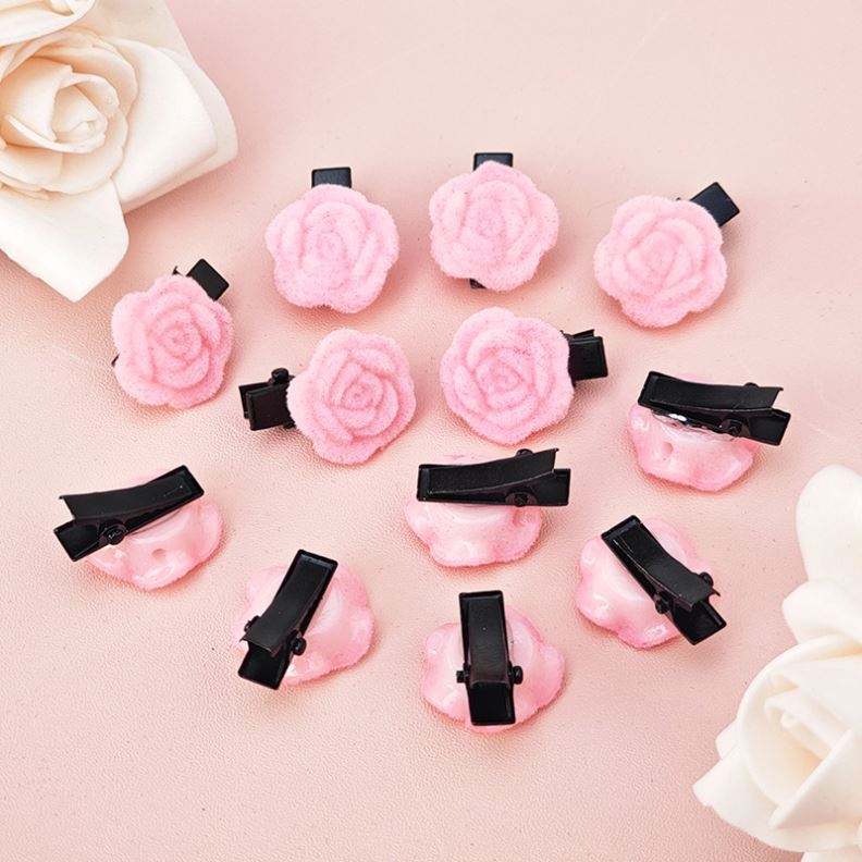 กิ๊บหนีบผมหน้าม้าทรงเป็ดวินเทจสำหรับฤดูใบไม้ร่วงฤดูหนาวเครื่องประดับผมสีแดงกำมะหยี่สำหรับผมดอกไม้คาเมลเลีย