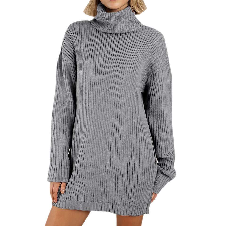 เสื้อคาร์ดิแกนไหมพรมคอเต่าทรงหลวมสำหรับผู้หญิง ฤดูใบไม้ร่วง ฤดูหนาว งานถักหนา ปักลาย กันยับ แบบยาว สั่งตัดได้