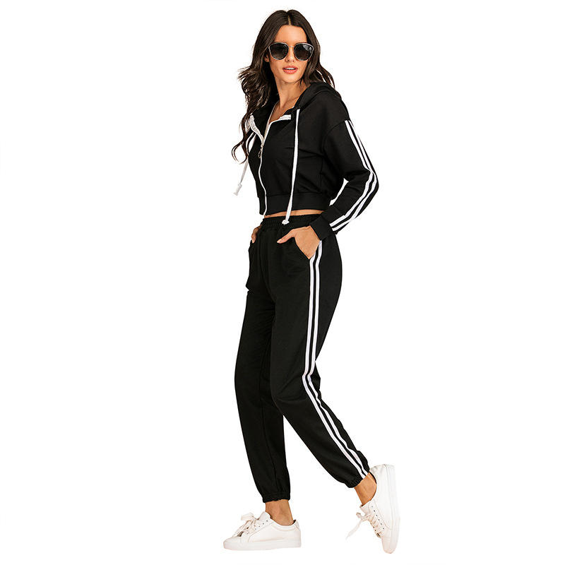 ชุดวอร์ม2ชิ้นมีฮู้ดแบบสวมหัวมีซิปแบบลำลองสำหรับฤดูหนาวฤดูใบไม้ร่วง
