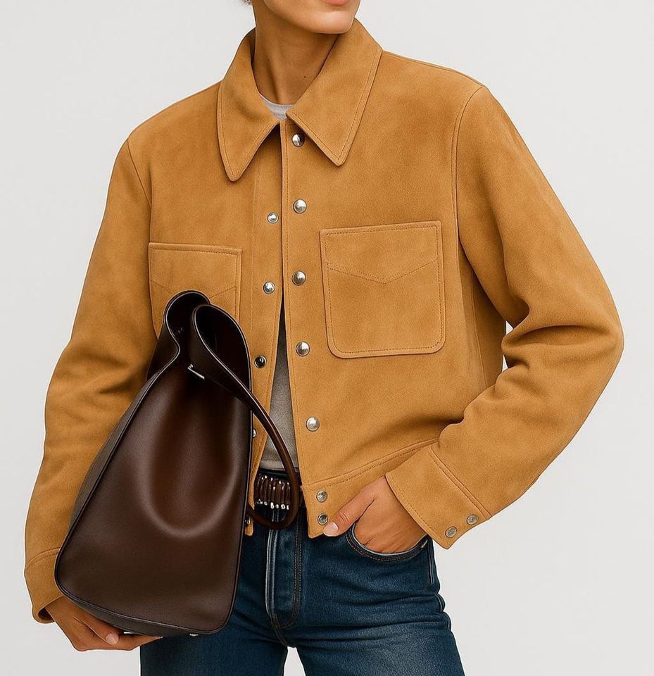 เสื้อแจ็คเก็ตหนังแกะกระดุมสองแถวสำหรับผู้หญิงในฤดูใบไม้ร่วงสีเขียวหนังกลับธรรมดาย้อมสีทึบกระดุมกันลมฤดูใบไม้ผลิฤดูหนาวฤดูใบไม้ร่วง