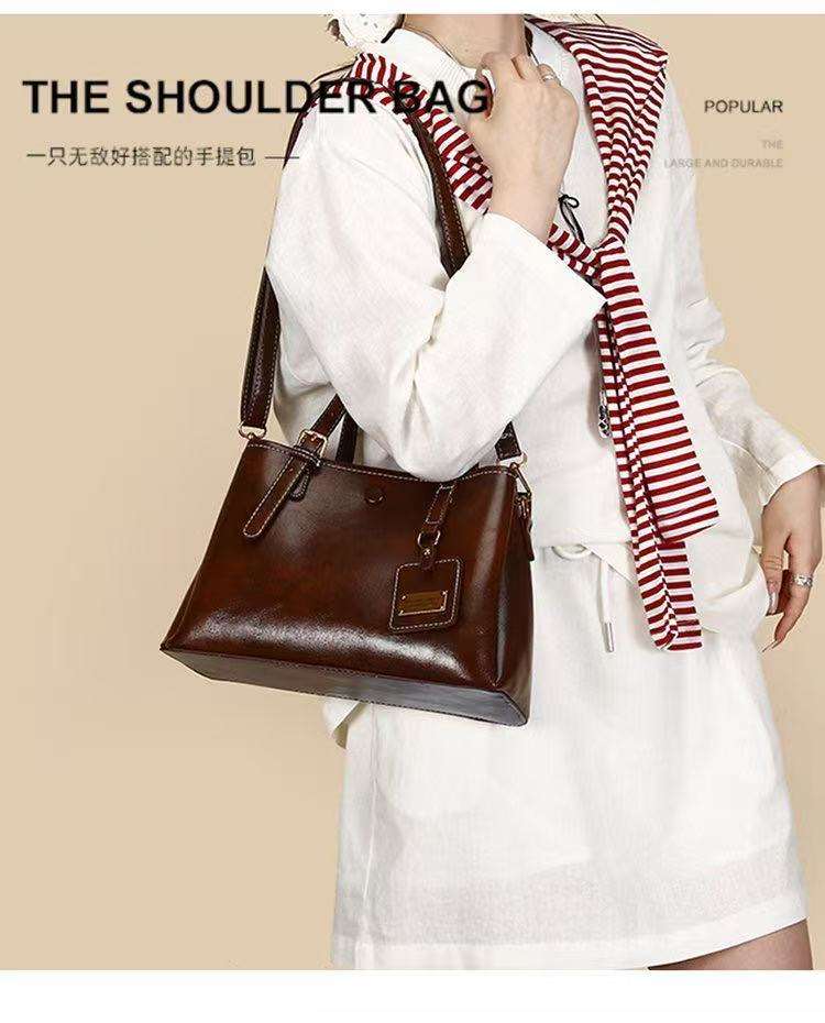 กระเป๋าถือสะพายข้างแบบสะพายไหล่ข้างเดียวสำหรับผู้หญิง ฤดูใบไม้ร่วง มีช่องใส่ของหลายช่อง ใช้งานได้จริง สไตล์เรโทร สีเดียว