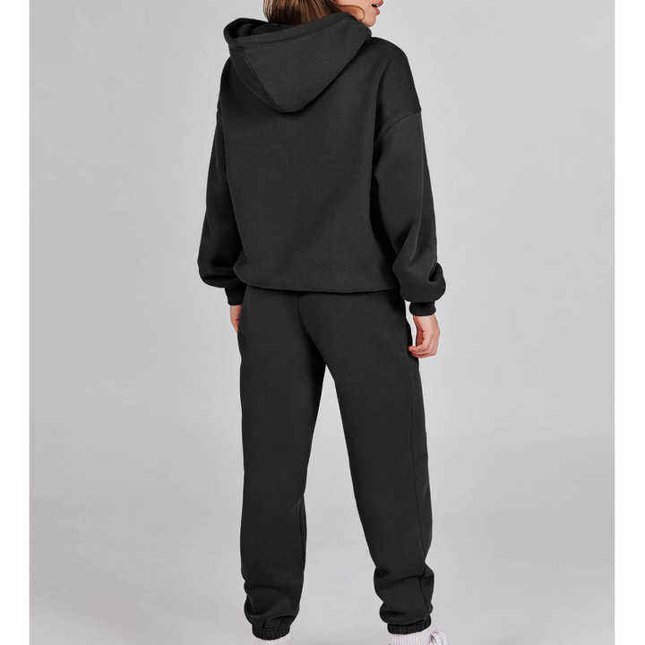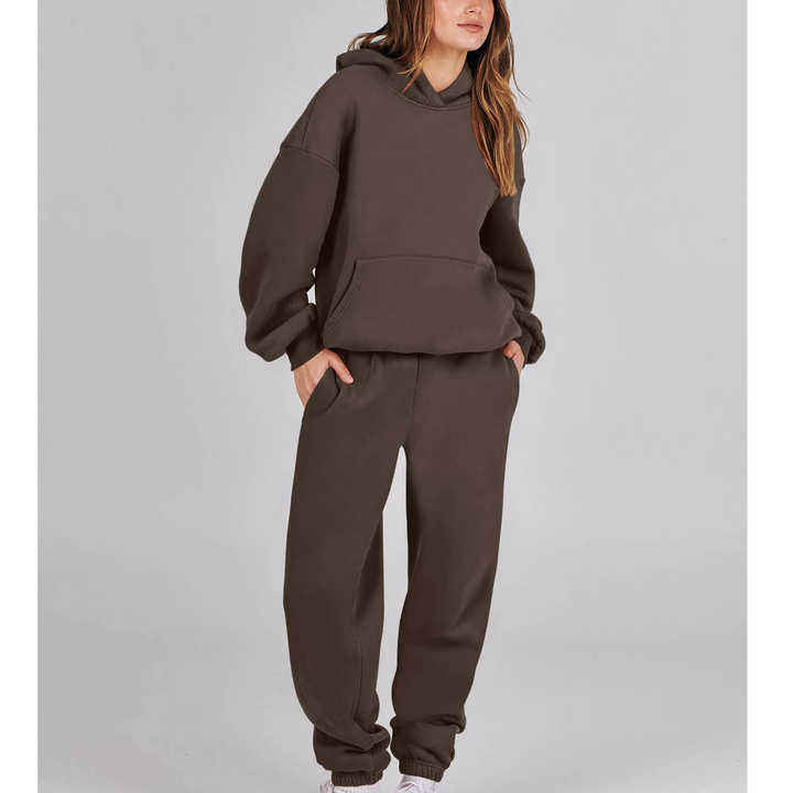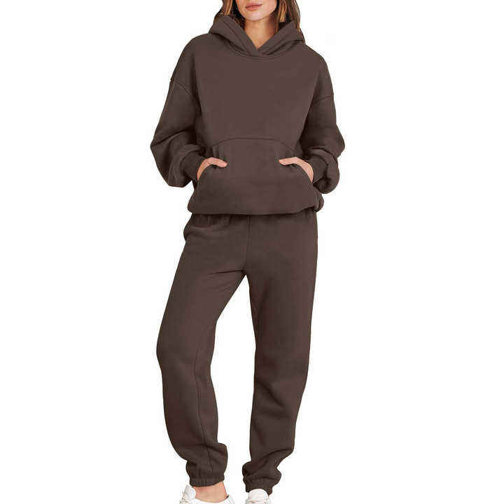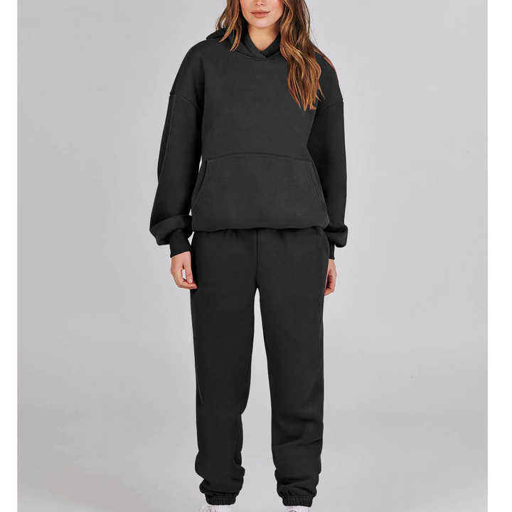 ชุดวอร์ม2ชิ้นสำหรับผู้หญิงชุดวอร์มลำลองแนวสตรีทสวมใส่สบายสำหรับฤดูใบไม้ร่วงเซ็ตกางเกงกีฬาทรงโอเวอร์ไซส์สีพื้น