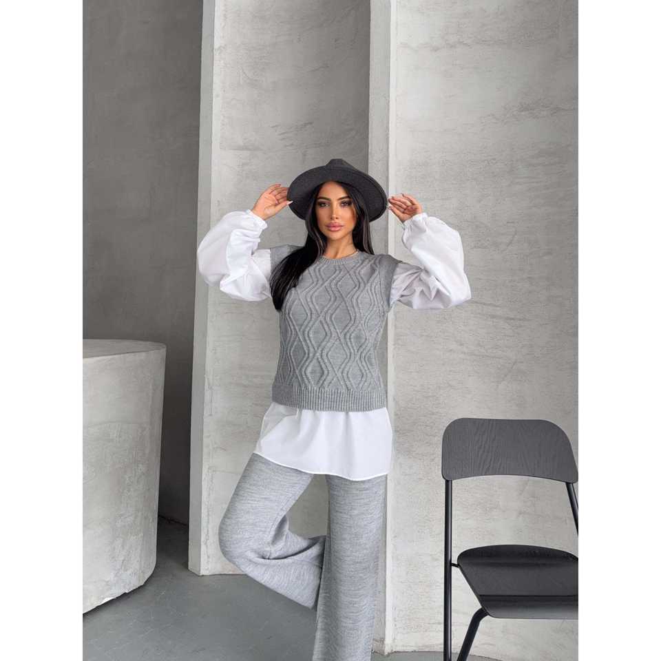 ชุดเสื้อผ้าถักไหมพรมฤดูใบไม้ร่วง 1561 เสื้อปักลายพร้อมรายละเอียดลวดลายและการตกแต่งด้วยลายพิมพ์