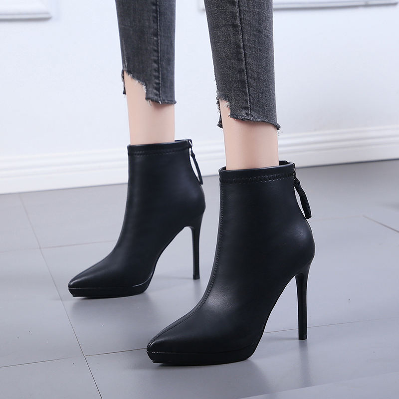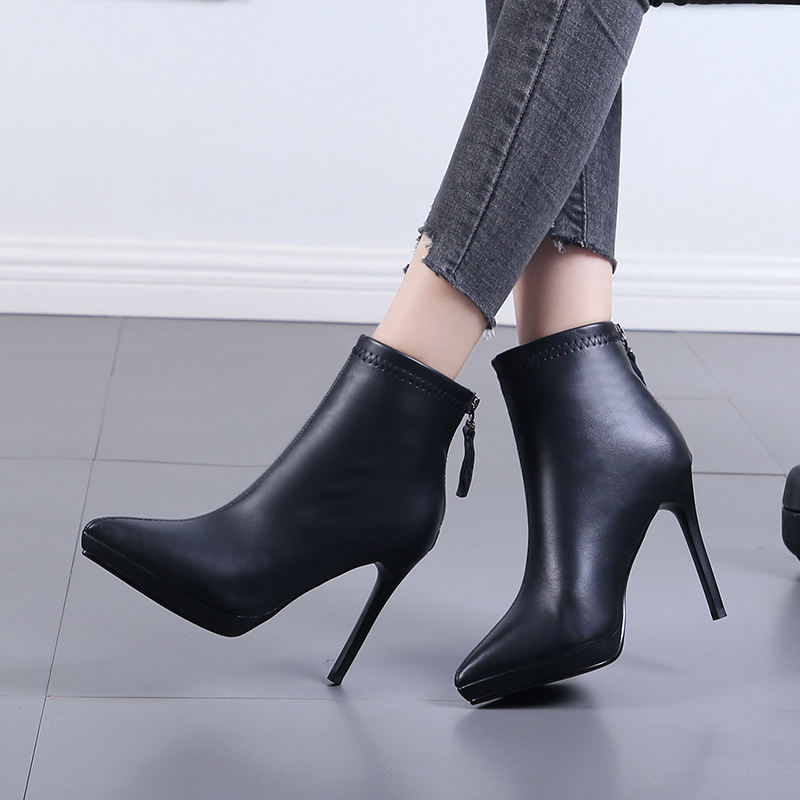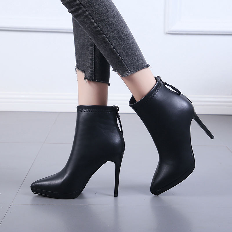 รองเท้าบูทข้อเท้าส้นสูงปลายแหลมแบบใหม่ประจำฤดูใบไม้ร่วงและฤดูหนาวปี 2025 ส้นบาง เซ็กซี่
