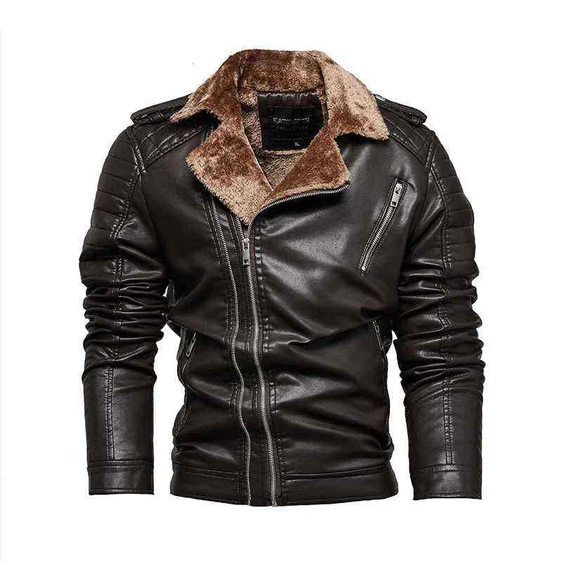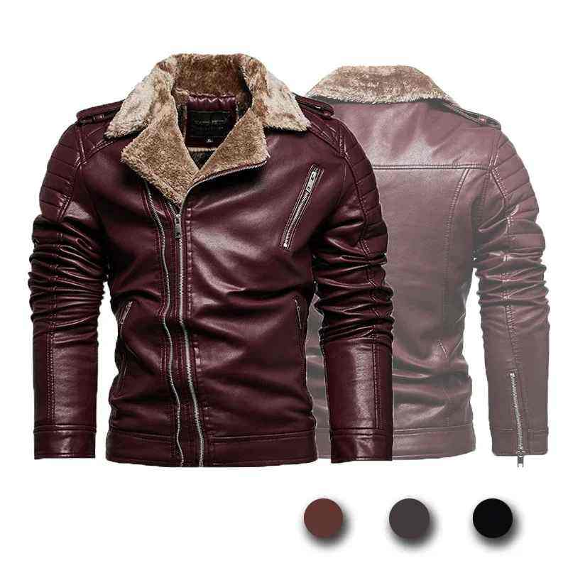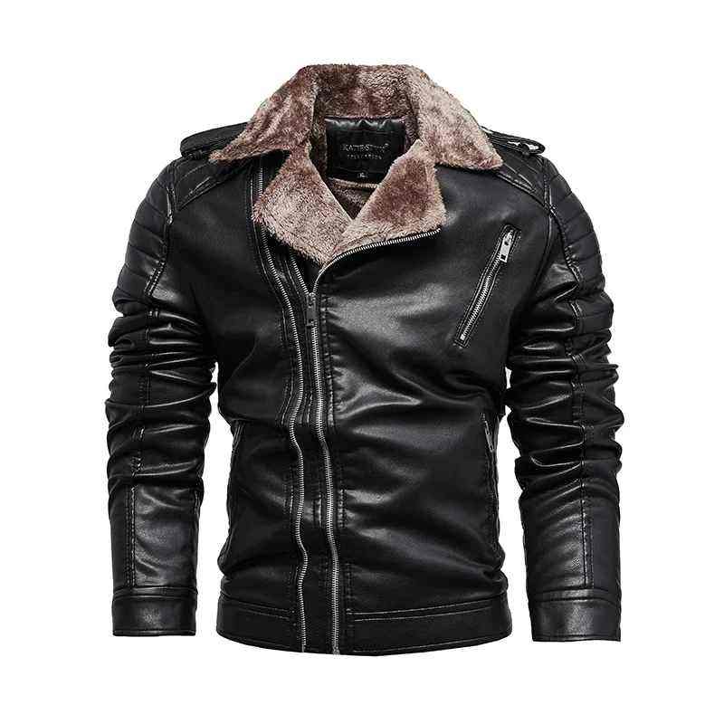 เสื้อแจ็คเก็ตผู้ชายหนังเทียมขนสัตว์เทียมสำหรับฤดูใบไม้ร่วงและฤดูหนาว แฟชั่นลำลอง ปกเสื้อแบบปกเชิ้ต ขนแกะเทียม ซิปหนา สำหรับขี่มอเตอร์ไซค์