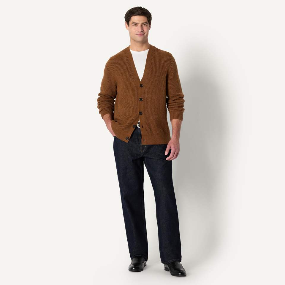 เสื้อคาร์ดิแกนคอวีสไตล์ญี่ปุ่นสำหรับฤดูใบไม้ร่วงและฤดูหนาว เสื้อสเวตเตอร์ถักลำลองหลวมๆสำหรับผู้ชาย