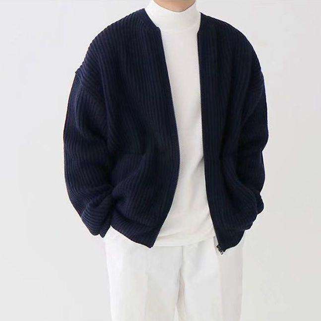 เสื้อคาร์ดิแกนถักแฟชั่นใหม่สำหรับผู้ชาย ฤดูใบไม้ร่วงและฤดูหนาว สีพื้น ทรงหลวม สไตล์ลำลอง ไซส์ใหญ่