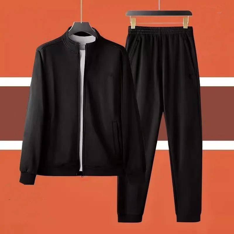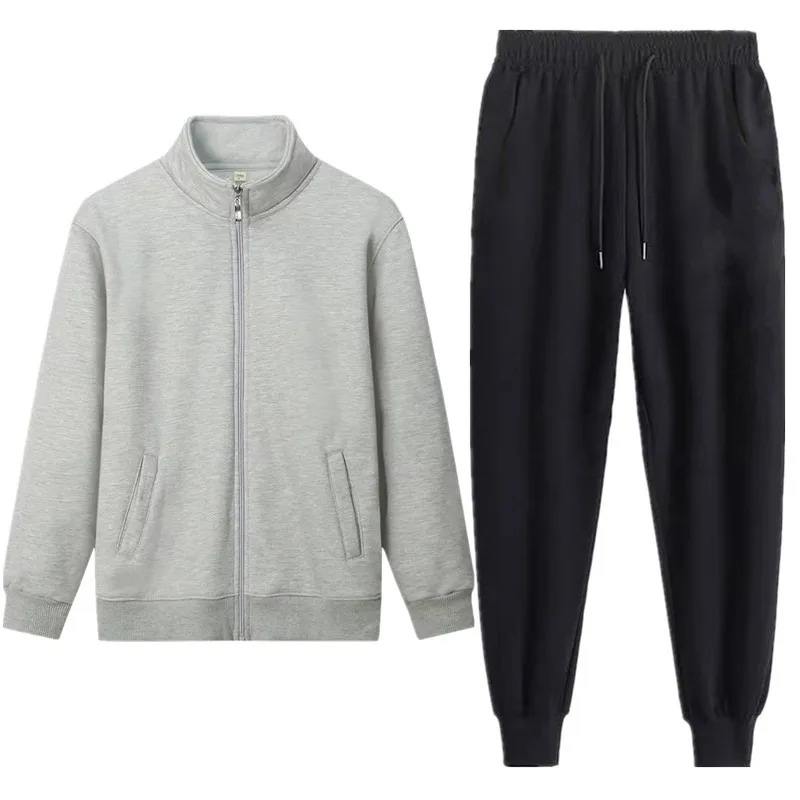 Autumn Winter Men's Youthful Fashionable Sports Running Cardigan Sweatshirt Casual Long Pants Two-Piece Breathable Solid