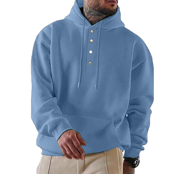 เสื้อมีฮู้ดสำหรับผู้ชาย, เสื้อกันหนาวแบบมีฮู้ด400มีฮู้ดทรงหลวมมีกระดุมสำหรับฤดูใบไม้ร่วง