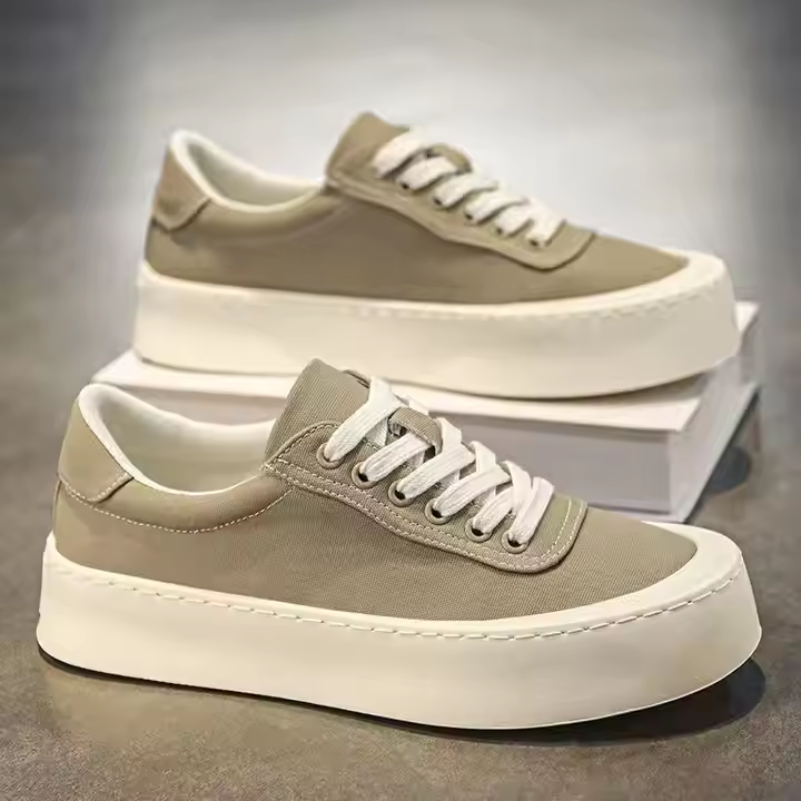 รองเท้าผ้าใบผู้ชายสีพื้นสไตล์ลำลองแฟชั่นใหม่สำหรับฤดูใบไม้ร่วง ฤดูใบไม้ผลิ และฤดูร้อน