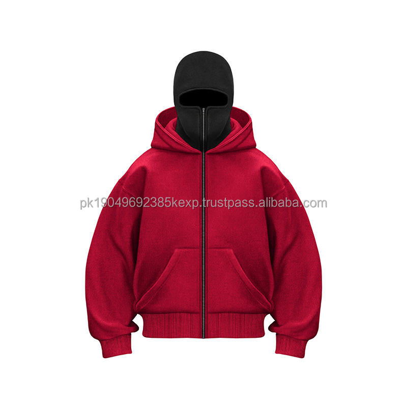 เสื้อฮู้ดแฟชั่นฤดูใบไม้ร่วงฤดูหนาว แบบมีฮู้ดสองชั้น ปิดหน้าแบบนินจา ปักลาย สำหรับผู้ชายและผู้หญิง สีพื้น ดีไซน์ใหม่