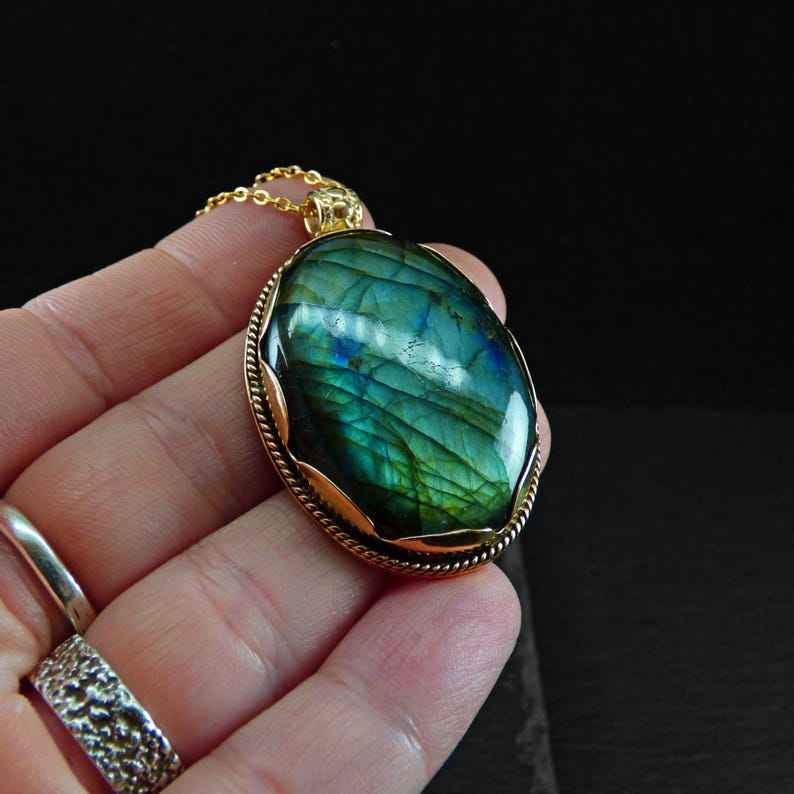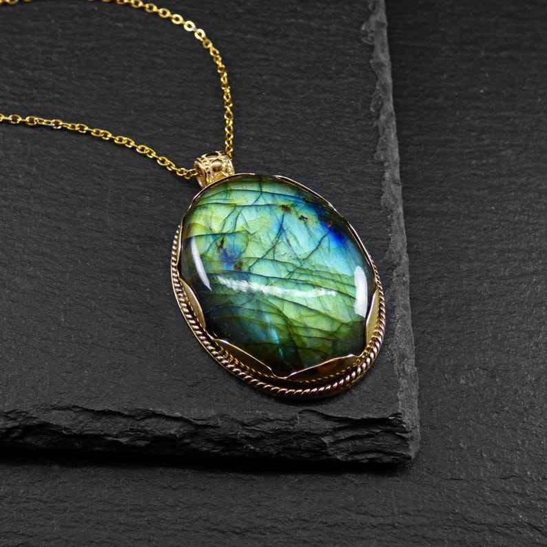 Ava ทำด้วยมือ18K ชุบทองจี้เงินสเตอร์ลิงหลากสีสวยตั้งขอบหินสไตล์วินเทจ45มม