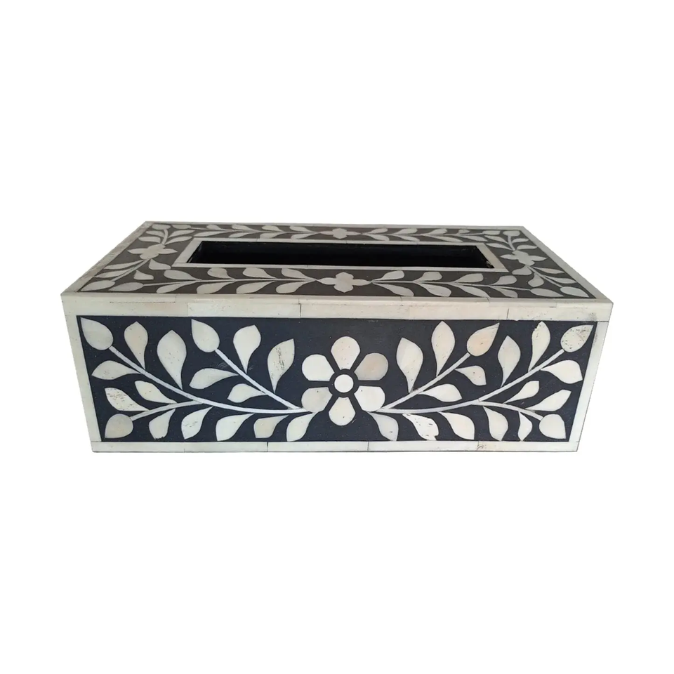 กล่องทิชชู่แบบฝังกระดูกและไม้ถูพื้นในราคาถูกจากผู้ผลิตอินเดียโดยงานฝีมือรูปพระจันทร์เสี้ยว