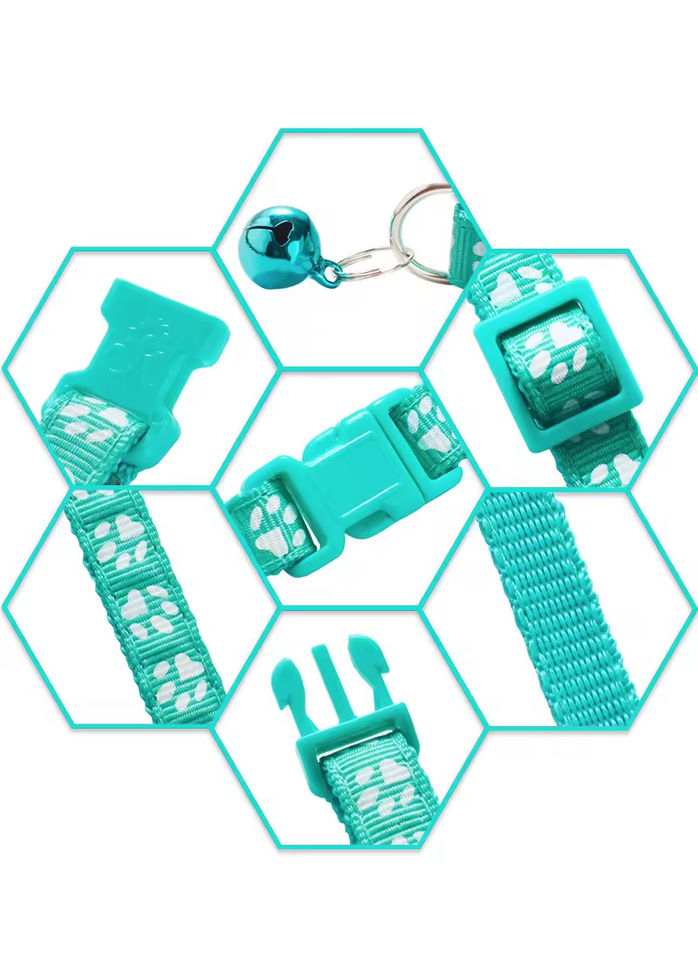 ปลอกคอพิมพ์ลายอุ้งเท้าแมวพร้อมกระดิ่ง ปลอกคอแบบนิรภัยสำหรับแมว นุ่ม สบาย