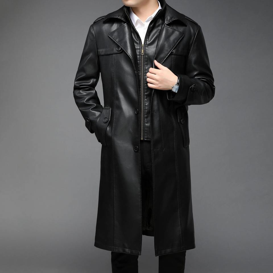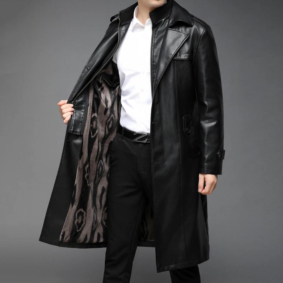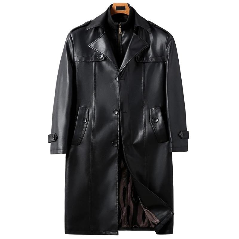 เสื้อโค้ทหนังแท้คุณภาพสูงสำหรับผู้ชาย ทรงเข้ารูป สไตล์เทรนช์โค้ท กันน้ำ แจ็คเก็ตหนังเทียมสำหรับฤดูหนาว ไซส์ใหญ่ หนา อุ่น มีสินค้าพร้อมส่ง