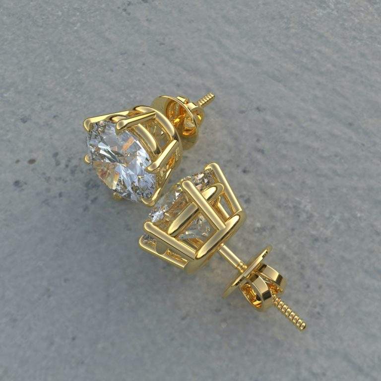 Avarta Jewellery 2 Carat Each Lab Grown Solitaire Diamond Studs 14k 18k Yellow Gold Lab Certified BIS HUID Hallmarked for Girls