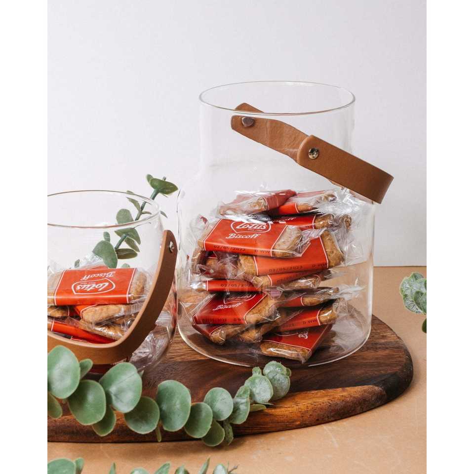 แจกันแก้วขนาดใหญ่พร้อมที่จับหนังสำหรับเก็บและบรรจุอาหารที่หรูหรา