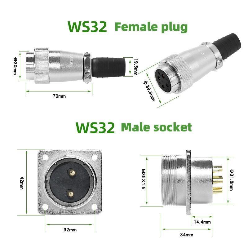 ขั้วต่อสายไฟสำหรับการบิน รุ่น WS32 แบบตัวผู้และตัวเมีย หัวเสียบแบบสี่เหลี่ยม 4/6/8/10/11/12/13/14/19 ขา สำหรับงานอุตสาหกรรม
