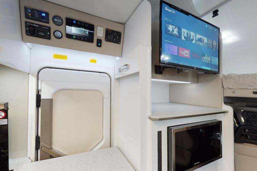 เตียง, ห้องครัว, ห้องน้ำ, อุปกรณ์จัดเก็บสินค้า, เครื่องปรับอากาศ, พื้นที่รับประทานอาหาร, ระบบบันเทิง