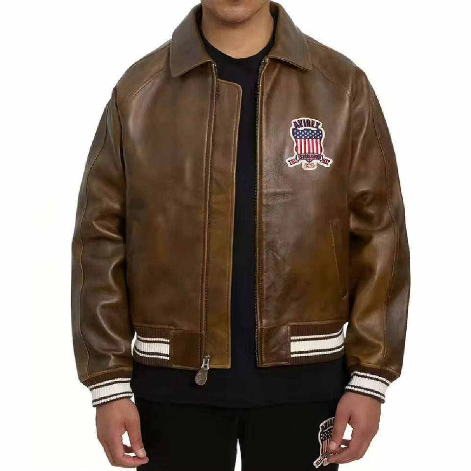 เสื้อแจ็คเก็ตหนัง Avirex สไตล์วินเทจ ทรงบอมเบอร์ หนังแท้ อุ่นสบาย ใส่ได้ทุกวัน