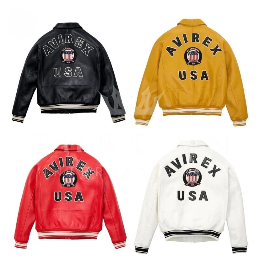 เสื้อแจ็คเก็ตบอมเบอร์หนังวัวแท้สำหรับผู้ชาย Avirex แบบสองด้าน ใส่ได้ทั้งสองด้าน กันน้ำ กันลม สไตล์วินเทจ ปิดด้วยกระดุมเม็ดเดียว