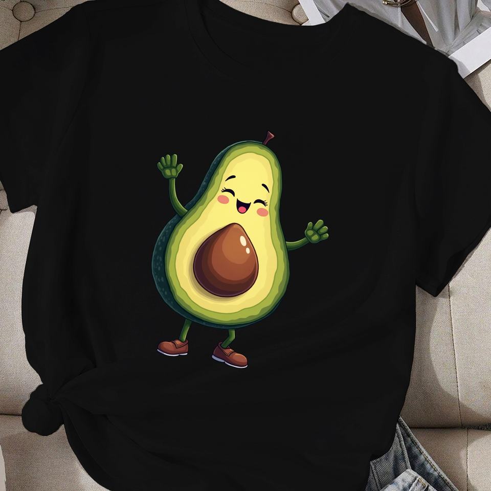 Casual Women's Comfit T-Shirt with Avocado Dabbing Dance Pose Printed on Knitted Polyester