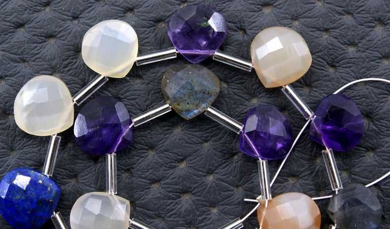 สร้อยคอทำมือ,ลูกปัด Briolette รูปหัวใจทำจากพลอยหลากสีธรรมชาติ19ชิ้น Awazing 1 Strand