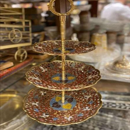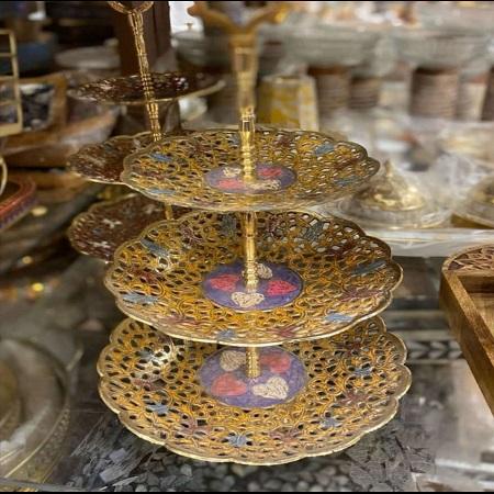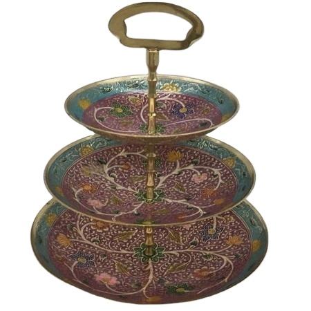 ที่วางเค้ก3ชั้นพิมพ์ลายดอกไม้สุดเจ๋ง,ที่วางเค้กตั้งโต๊ะหลายสีสำหรับงานวันเกิดงานแต่งงานทองเหลืองที่วางเค้ก