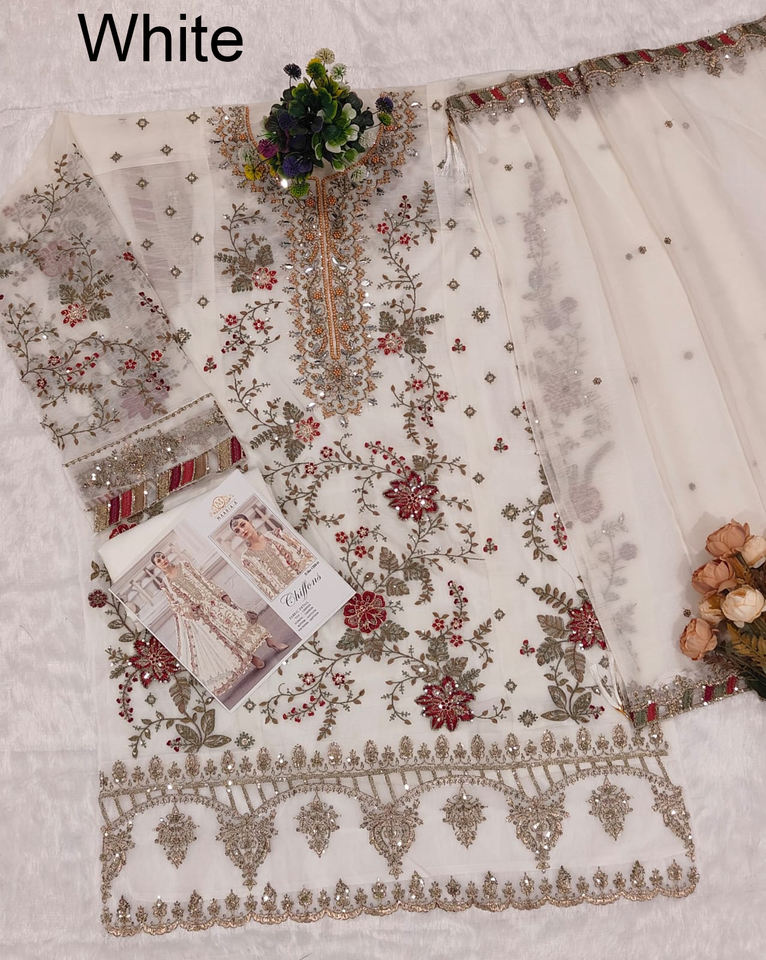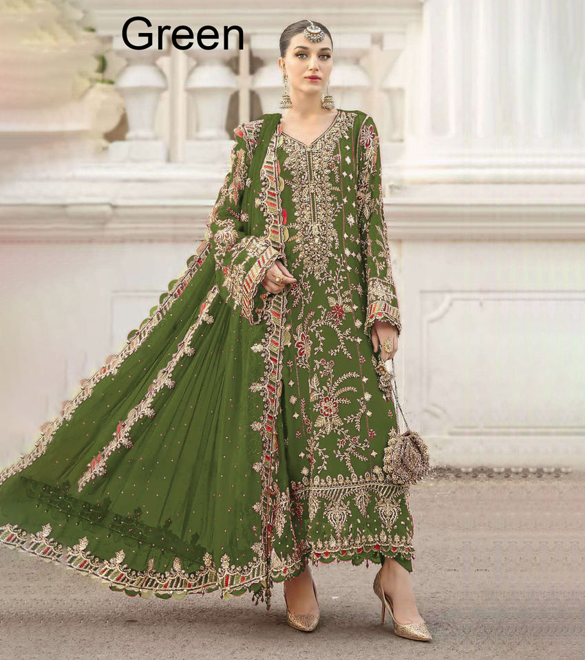 ชุดสัลวาร์ คามีซสำหรับผู้หญิง ชุดงานเทศกาลสุดหรู พร้อมผ้าคลุมไหล่ งานปักสวยงาม แบบพันจาบ พร้อมสวมใส่