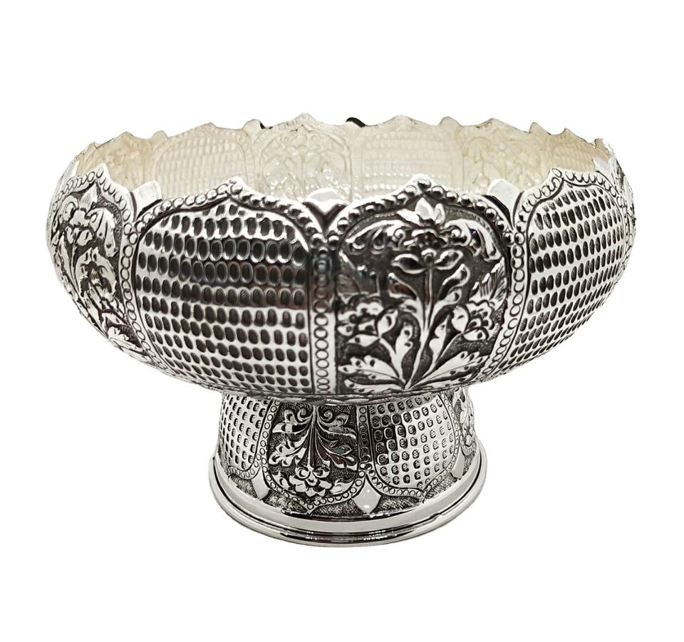 ชามเสิร์ฟอาหารสำหรับเครื่องครัว,ถ้วยเสิร์ฟโลหะเงินแฮนด์เมดผลไม้แห้งสำหรับบ้านโรงแรมร้านอาหารชามทรงกลม