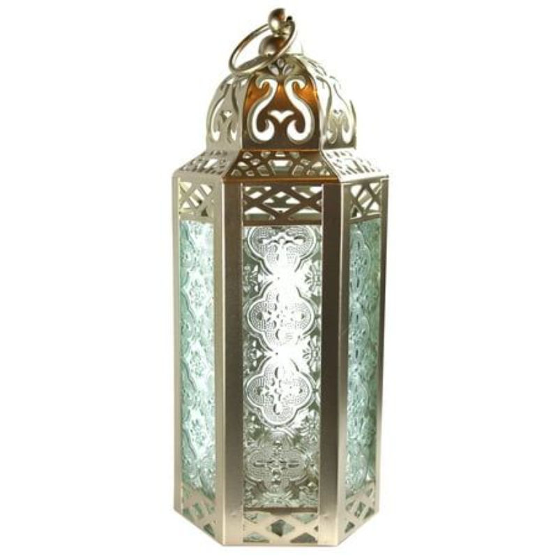 ตะเกียงเทียนโลหะสีเงินด้านและแก้วตกแต่งสวยงาม สไตล์โมร็อกโก สำหรับตกแต่งบ้านและเทศกาลคริสต์มาส