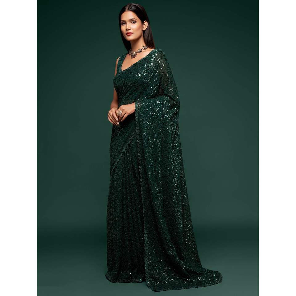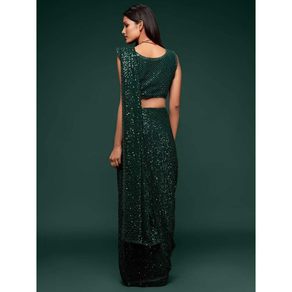 ผ้าซิ่นสีเขียวเข้มประดับเลื่อมลายตรงทันสมัยสุดหรูสำหรับงานปาร์ตี้