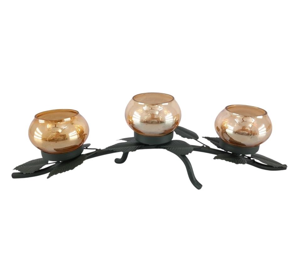 ที่วางเทียนอลูมิเนียม/แก้ว ดีไซน์สวยงาม สำหรับตกแต่งโต๊ะ 3 แขน สไตล์โมเดิร์น ทำด้วยมือ งานสั่งทำพิเศษ สำหรับคริสต์มาส สีดำ