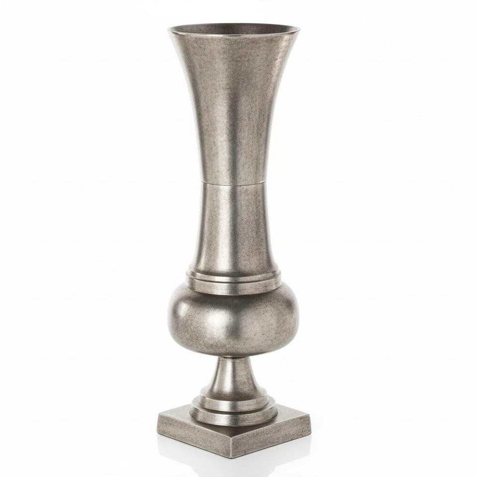 แจกันดอกไม้ทรงแตรโลหะ ดีไซน์สวยงาม สีเงิน สำหรับตกแต่งบ้าน สำนักงาน ห้องนั่งเล่น แจกันโลหะตั้งพื้น