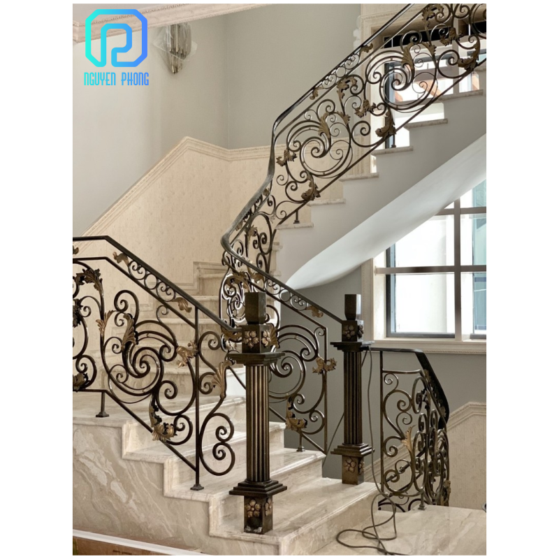 ราวบันไดโลหะดีไซน์หรูหรา ระดับไฮเอนด์ ราวบันไดเหล็กสุดหรู NGUYEN PHONG NPSC&B189 สำหรับโรงแรมและวิลล่า