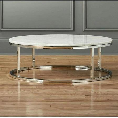 สีเงินที่ทันสมัยศูนย์เฟอร์นิเจอร์รอบโต๊ะกาแฟตารางเฟอร์นิเจอร์ที่น่ากลัวกับหินอ่อนสำหรับบ้านโรงแรมห้องนั่งเล่นศูนย์