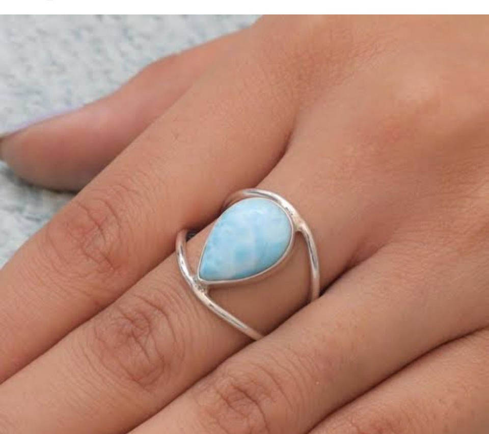 แหวนเงินสเตอร์ลิงทำด้วยมือสุดเจ๋งอัญมณีเจียระไนแบบเรียบลาริมาร์ชุดฝา9X12mm ลูกแพร์แหวนหมั้นเครื่องประดับสำหรับทุกคน