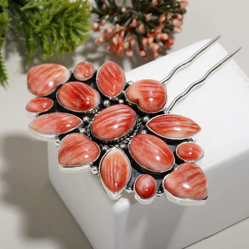 ที่ติดผม925หอยนางรมสีส้มสีเงินสเตอริงปิ่นปักผมอัญมณีธรรมชาติดีไซน์ไม่ซ้ำใคร