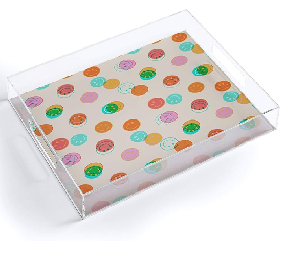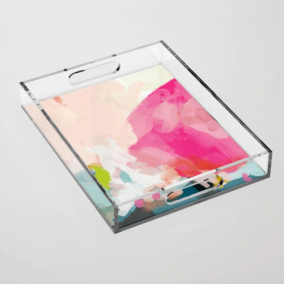 ถาดเสิร์ฟอะคริลิคพิมพ์ลายสวยงาม ถาดเสิร์ฟอะคริลิคใสแบบกำหนดเองพร้อมหูจับสำหรับใช้ในโรงแรมและงานเลี้ยง