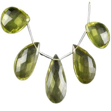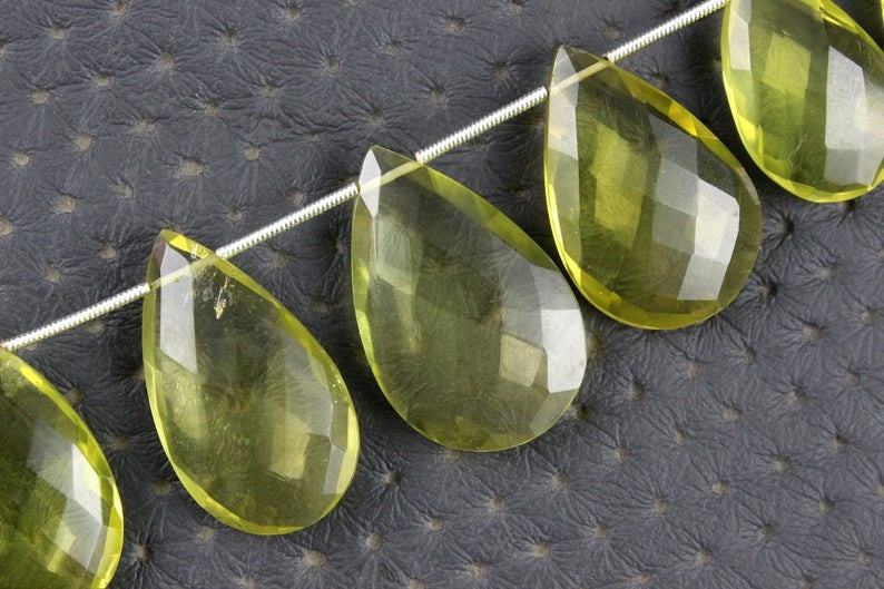 ลูกปัด Briolette รูปทรงลูกแพร์19ชิ้น,อัญมณีควอตซ์สีเหลืองมะนาวธรรมชาติแท้