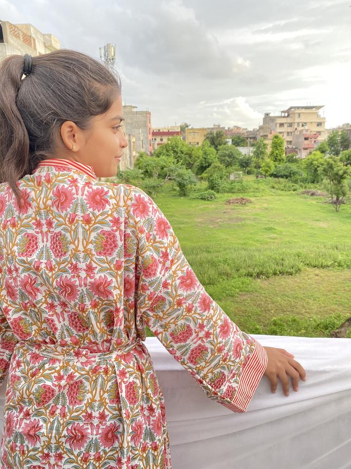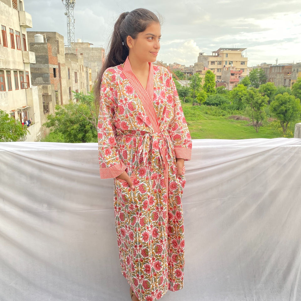 สายคาดเอวคอวียาวถึงเข่าสำหรับผู้หญิงแฟชั่นผ้าฝ้ายธรรมชาติพิมพ์ลายดอกไม้ซักได้สำหรับฤดูร้อน