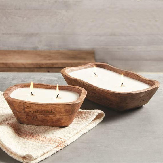 ชามแป้งเทียนธรรมชาติทำจากไม้มะม่วงสไตล์วินเทจปรับขนาดได้สำหรับตกแต่งโต๊ะงานแต่งบ้าน