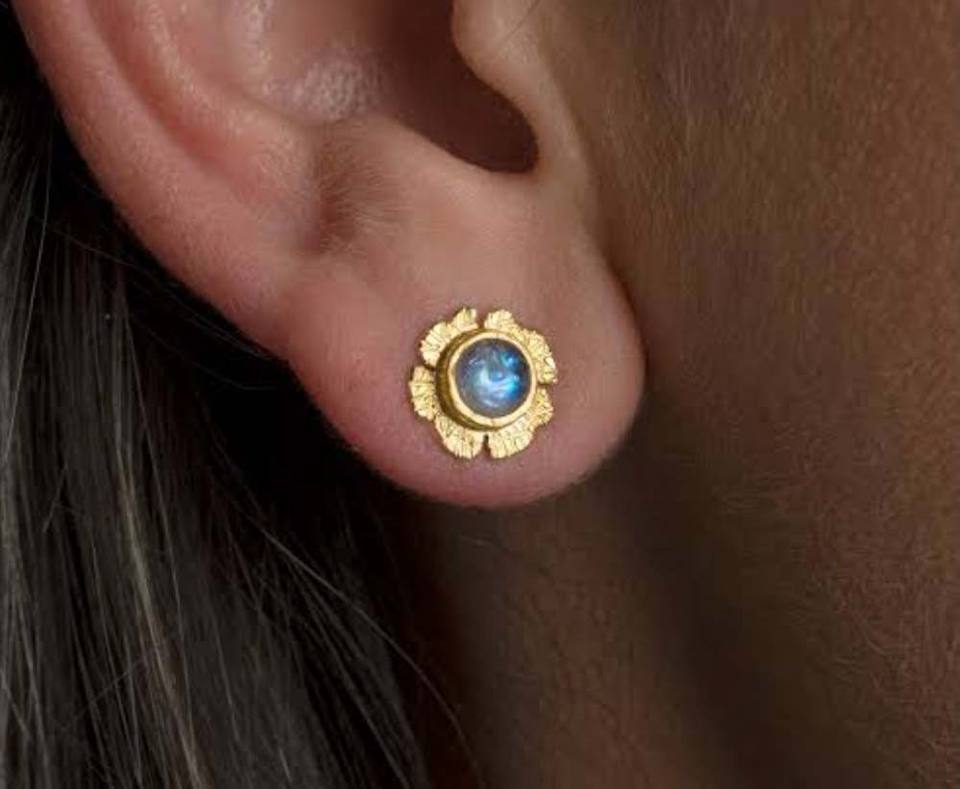 ต่างหูเม็ดกลมต่างหูเม็ดกลมอัญมณีลาบราดอไรต์ชุดขอบ8มม. ทำด้วยมือสีเงิน925สำหรับเป็นของขวัญวันครบรอบ