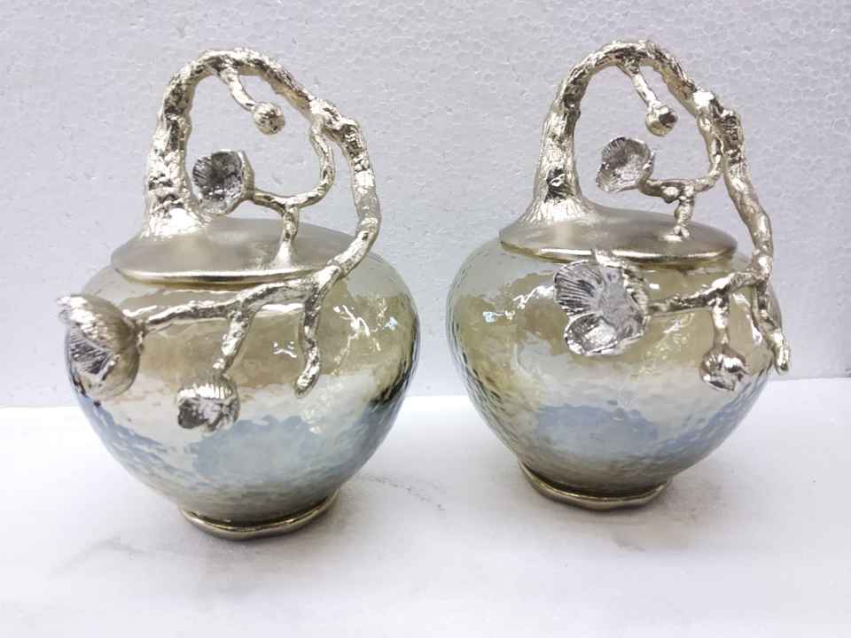 ชุดกล่องเก็บของ2ชิ้นสำหรับบ้านโรงแรมเครื่องครัวอลูมิเนียมดีไซน์รูปใบไม้สีน้ำตาลทองกล่องเก็บของทรงกลมถังขยะ