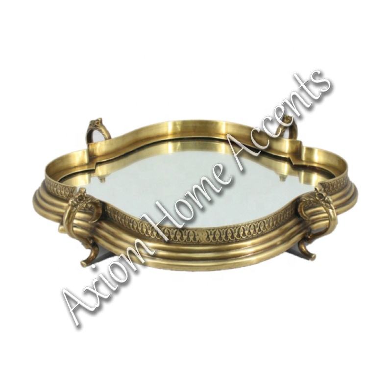 AXIOM ถาดเสิร์ฟทองเหลืองเงาพร้อมผิวขัดเงาสำหรับการตั้งค่าโต๊ะในบ้าน