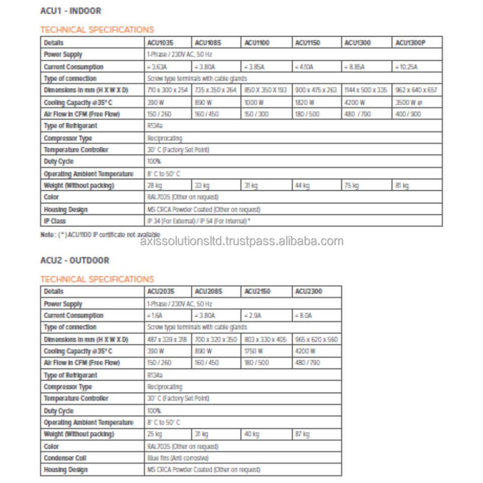 หน่วย ACU2150101แกนปรับอากาศกลางแจ้ง1500W 230V AC 50Hz สัญญาณเตือนภัย SS304